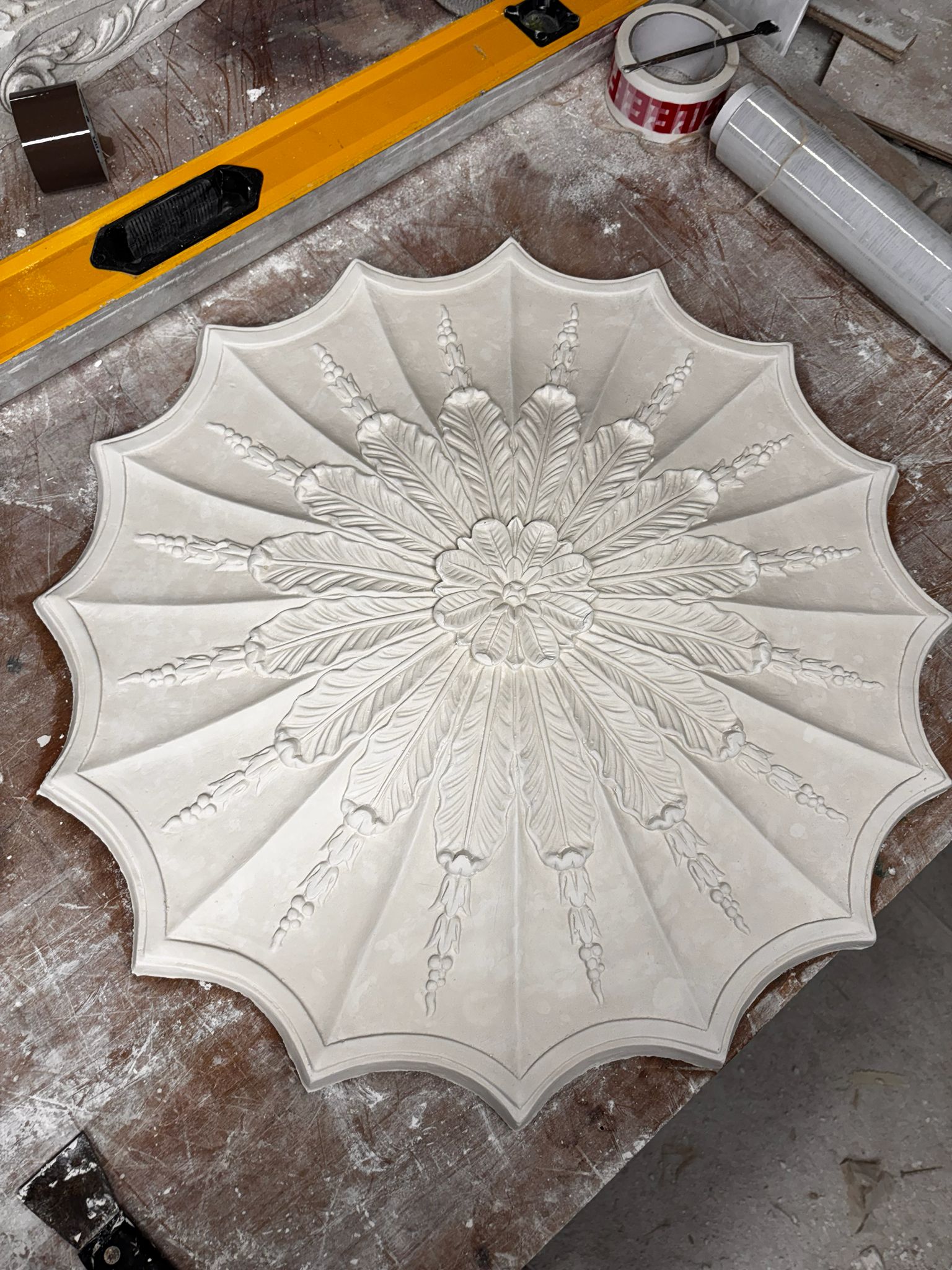 Beautifully crafted Adams fan centrepiece, 620mm in diameter, showcasing intricate detailing and a graceful scalloped edge.